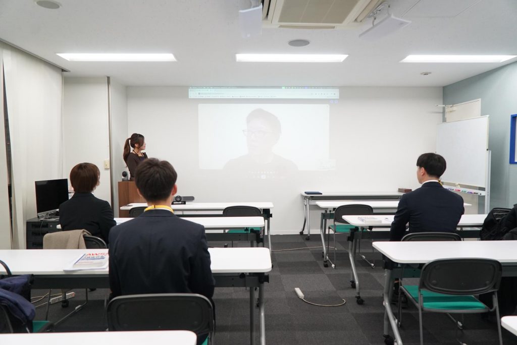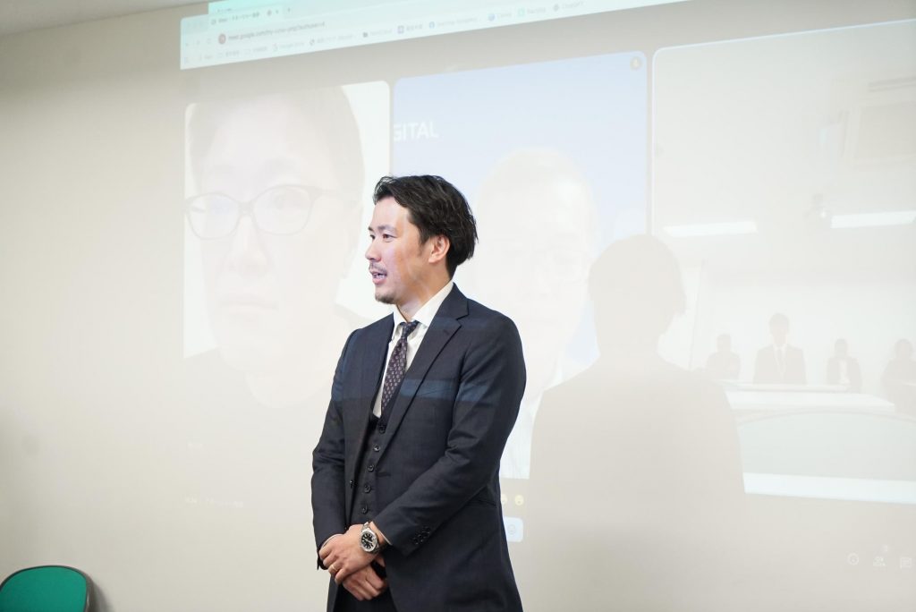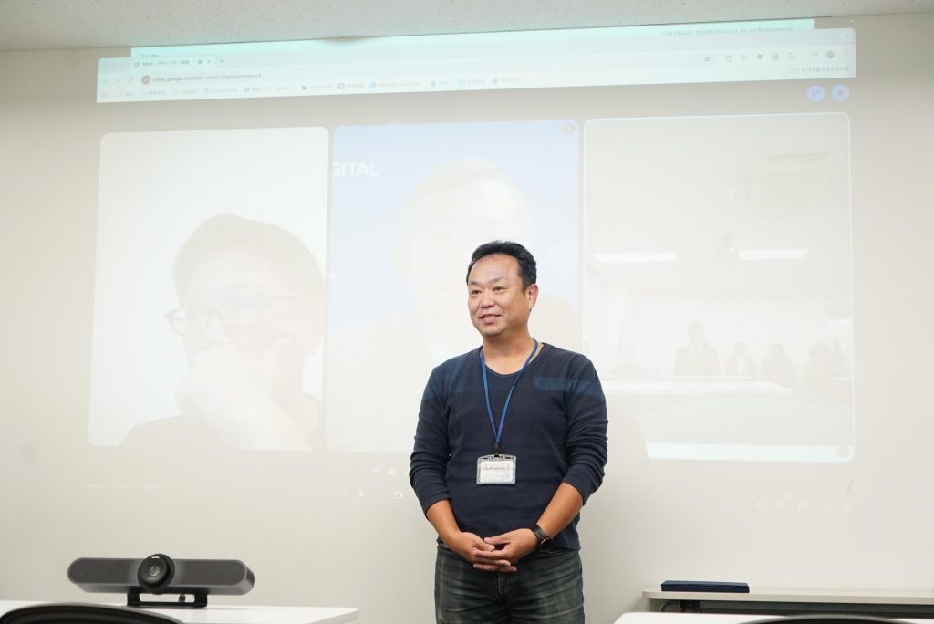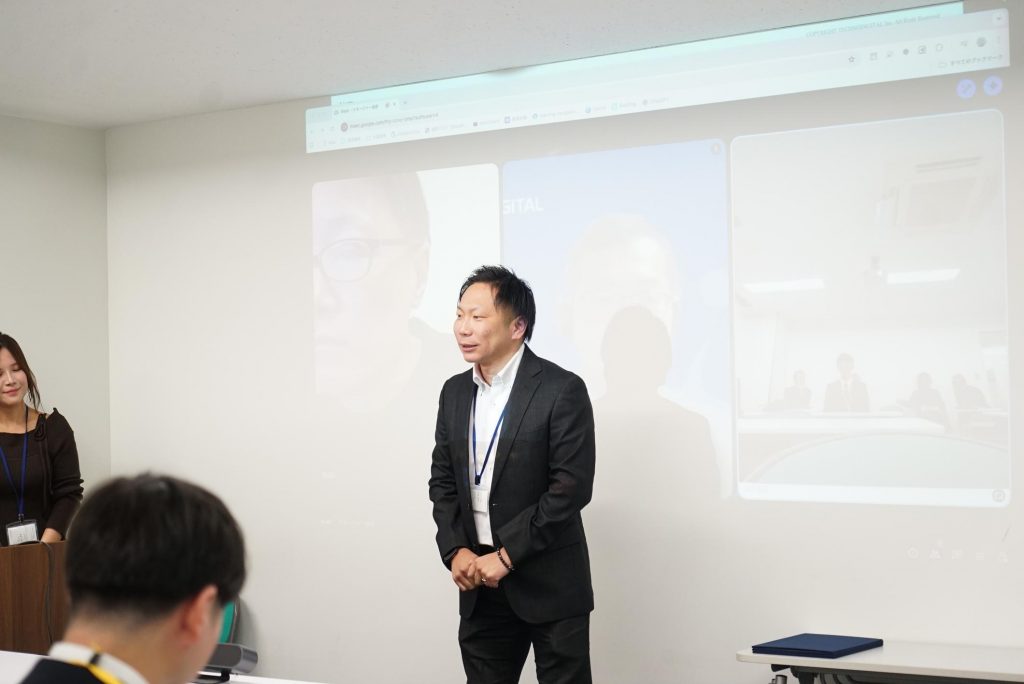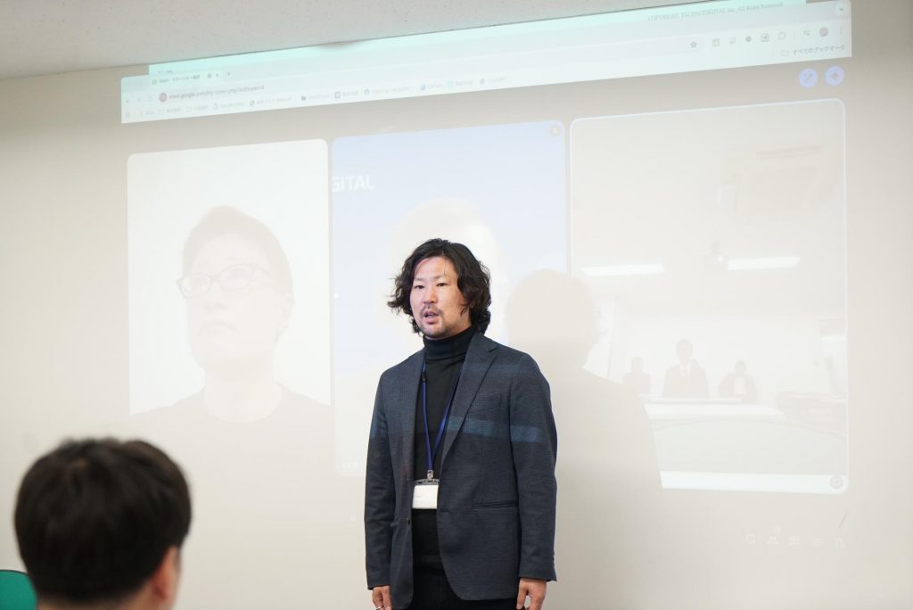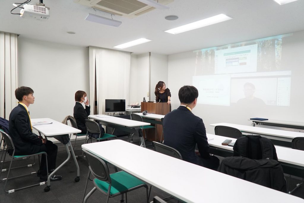 はじめに播田社長から内定者に向けて、テクノデジタルの今後の展望やお祝いのお言葉、激励を頂きました。
